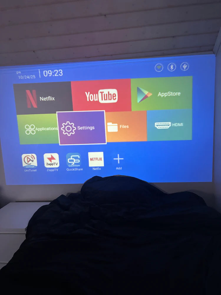 Náš chytrý projektor nabízí ostré Full HD rozlišení 1280×1080 (1080p) a promítne obraz až do velikosti 130 palců. Ideální volba pro jasný a působivý zážitek z domácího kina.